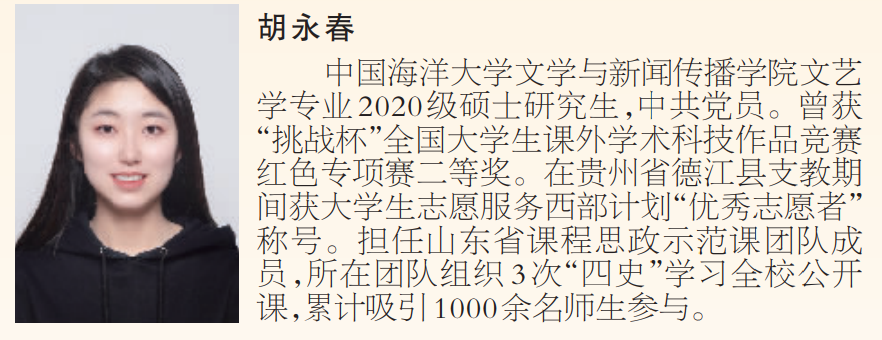 正值五四青年节《人民日报》用六个整版刊登了100名研究生、100名本专科生、100名中等职业教育学生国家奖学金获奖学生优秀代表名录。其中,青岛5名同学上榜。 和小编一起来看具体名单~ ![]() · 陈阜斌 ![]() 中国石油大学(华东)地球科学与技术学院地质资源与地质工程专业2020级博士研究生,中共党员。曾获“挑战杯”全国大学生课外学术科技作品竞赛一等奖。聚焦深层油气勘探,参与国家自然科学基金重点项目等科研项目3项。发表SCI期刊论文7篇、EI会议论文2篇。热心公益,向自闭症扶助机构捐赠奖助学金3万余元。 · 胡永春 ![]() 中国海洋大学文学与新闻传播学院文艺学专业2020级硕士研究生,中共党员。曾获“挑战杯”全国大学生课外学术科技作品竞赛红色专项赛二等奖。在贵州省德江县支教期间获大学生志愿服务西部计划“优秀志愿者”称号。担任山东省课程思政示范课团队成员,所在团队组织3次“四史”学习全校公开课,累计吸引1000余名师生参与。 · 荆树桐 ![]() 中国海洋大学食品科学与工程学院食品科学与工程专业2019级学生,中共党员。曾获山东省“优秀学生”称号,获中国国际“互联网+”大学生创新创业大赛金奖、全国大学生生命科学竞赛二等奖、“挑战杯”中国大学生创业计划竞赛山东省银奖,获国家实用新型专利授权2项。 · 郭子航 ![]() 青岛工程职业学院智能制造学院模具设计与制造专业2020级学生。曾获机械行业职业教育技能大赛“中望杯”工业软件应用与机械工程创新设计赛项一等奖、山东省大学生先进成图技术与产品信息建模创新大赛一等奖。专注提升技能水平,在校期间取得高级机修钳工、中级数控铣工等证书。 · 刘思彤 ![]() 山东省青岛外事服务职业学校2020级进出口报关专业学生,共青团员。2021年荣获全国职业院校数智化企业经营沙盘大赛省级特等奖。2022年荣获全国职业院校数智化企业经营沙盘大赛一等奖,被评为“山东省中等职业学校优秀学生”。 供稿 |?市教育人才服务与学生资助中心 图片来源 | 《人民日报》 转载请按以下格式注明来源↓↓↓ |