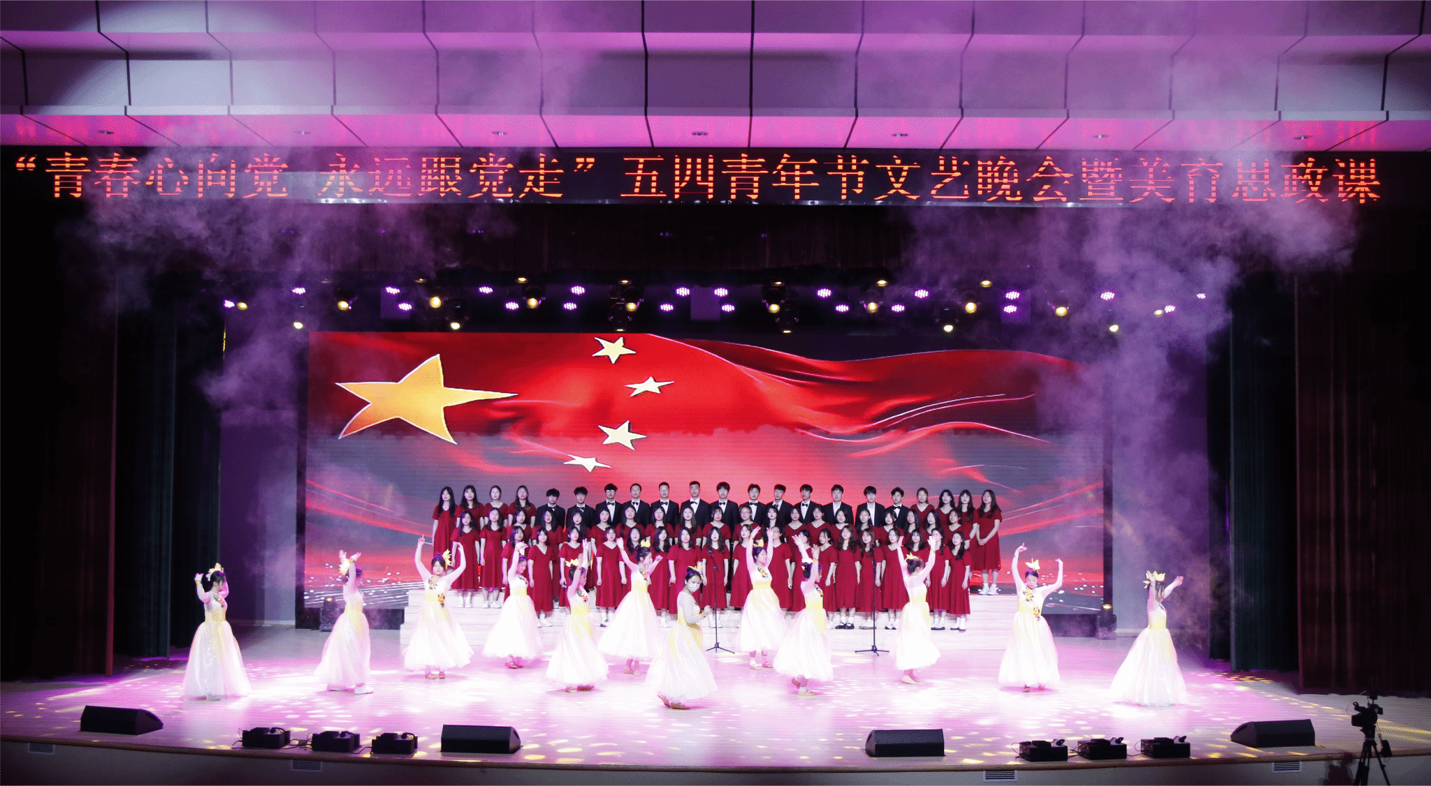 红船光芒引领复兴,青春激荡砥砺前行。今年是中国共青团建团101周年,是伟大的五四运动104周年。5月4日晚上,“青春心向党 永远跟党走”五四青年节文艺晚会暨美育思政课在滁州职业技术学院学术报告厅顺利举行。校党委副书记、校长许雪峰,校党委副书记杨家庆,校党委委员、副校长胡凼,校党委委员、校纪委书记孙静,以及各学院书记、院长和团总支书记出席了本场演出。 演出在大合唱《我和我的祖国》中拉开了帷幕,整场晚会共分为三个篇章——“青春初启程”、“国家正强盛”、“一起向问来”。本场演出还加入了传媒与设计学院最新研发的数字虚拟人“观晴”,是一次技术突破,也是学校首次在现场演出中加入数字虚拟技术。