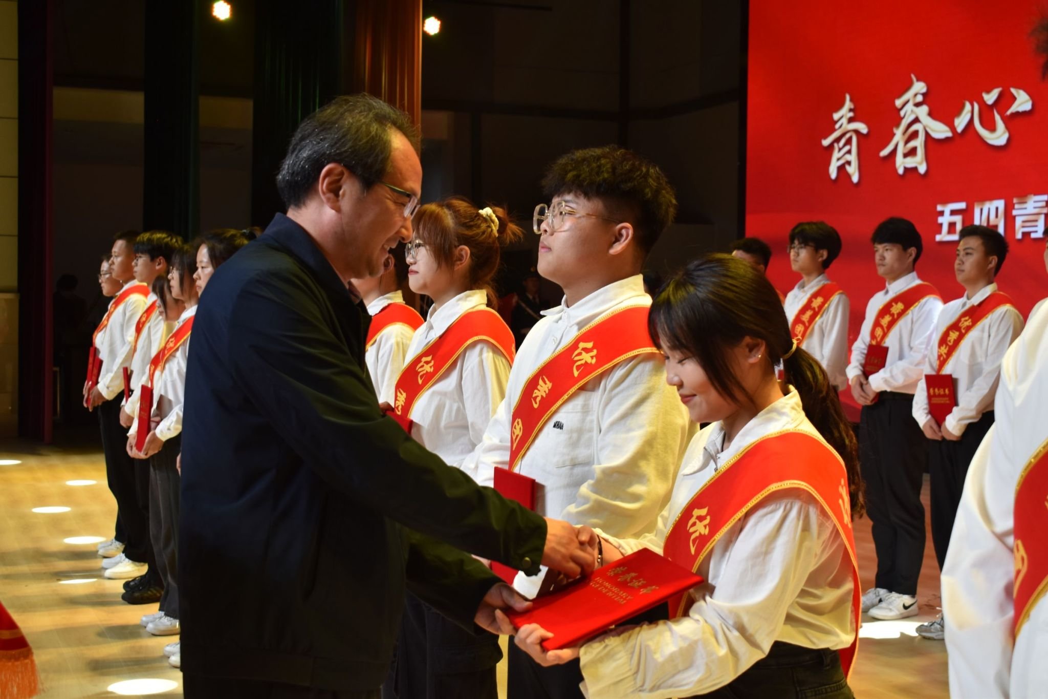 本次晚会进行了滁州职业技术学院2022年度五四青年表彰,对309名学生以及32个团组织分别授予“优秀共青团员”、“最美团支部书记”、“优秀共青团干部”、“优秀团支部”称号,许雪峰、杨家庆对受表彰学生和组织进行了颁奖。