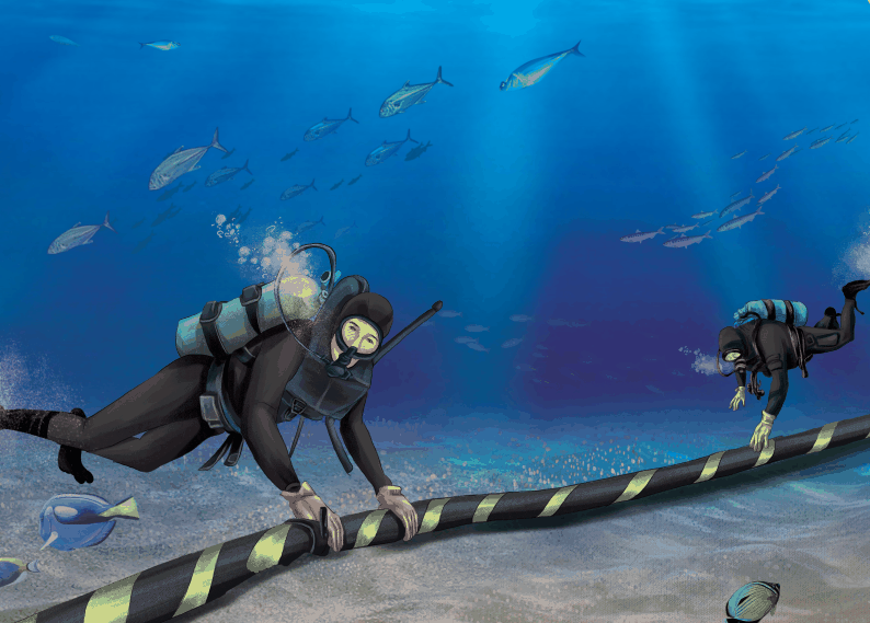 在如今的信息时代, 互联网变得越来越重要。 通过互联网, 人们可以第一时间知道世界各地的最新消息。 那么世界各地的网络是以什么方式连接的呢? 答案是海底光缆和卫星。 不过相较于卫星, 海底光缆有着更多的优势: 更稳定、使用寿命更长…… 1850年, 盎格鲁—法国电报公司铺设了一条 穿越英吉利海峡的电缆, 连接了英国和法国。 不过这条电缆只能发送莫尔斯码。 直到1851年, 真正的电缆才被架设起来, 并于1852年将大不列颠和爱尔兰连接在一起。 1866年, 英国铺设了跨大西洋的海底电缆, 使欧美大陆能够跨越大西洋进行电报通信。 1876年, 贝尔发明电话后, 海底电缆用以传输电话通信大规模发展, 为海底光缆的发展奠定了坚实基础。 1866 年,英国铺设海底电缆。 在海底电缆迅猛发展的同时, 光纤技术取得新的突破, 为海底通信带来了新的发展。 与海底电缆相比, 海底光缆容量大、保密性高、传输质量优异; 与陆上光缆相比, 海底光缆投资成本低, 建设效率也较高。 基于以上优势, 海底光缆很快就成为重要的洲际通信手段和 国际通信业务的主要承担者。 海底光缆联通各国 海底光缆是用绝缘外皮层层包裹的光纤束, 基本结构为聚乙烯层、聚酯树脂或沥青层、 钢绞线层、铝制防水层、聚碳酸酯层、 铜管、石蜡、烷烃层、光纤束。 这样的结构能够保护光纤, 防止海水侵入。 但是, 海底光缆结构材料不能采用轻金属铝, 因为铝和海水发生化学反应会使光纤的损耗变大。 海底光缆结构示意图 海底光缆铺设时需要从海底表面穿过, 不仅要避免损毁光缆, 还要避开珊瑚礁、沉船、鱼类栖息地等常见障碍物。 如此复杂的工程, 需要充足的资金支持。 据估算, 铺设一条越洋光缆的成本达数亿美元。 海底光缆铺设要避开很多障碍物 海底光缆虽然被铺设在深海, 不会受到工程机械的破坏, 但是也存在很多威胁。 地震、火山爆发等自然灾害经常会导致 海底光缆被大规模破坏, 鲨鱼也经常对其展开撕咬, 船锚、渔船拖网等也可能会将其损毁。 2007年, 中国台湾南部海域发生的强烈地震就导致 中美“亚太一号”、“亚太二号”海缆、亚欧海缆等 多条国际海底通信光缆断裂, 使网民无法正常上网。 还有于今年发生的汤加火山喷发, 导致海底电缆受损, 使汤加与外界短暂失去了联系。 鲨鱼有可能会撕咬海底光缆 20世纪70年代早期, 美国海军在苏联领海找到了苏联在海底的 军事通信电缆, 并且在电缆上安装了窃听设备, 将所有经过电缆的通信信号记录在录音带上。 美国海军每月对录音带进行更换, 并且将录满通信内容的录音带送到国家安全局 进行详细分析。 20世纪90年代中期, 美国特工人员乘坐特制的间谍潜艇潜入深海海底, 进行光缆窃听试验。 他们找到了目标光缆, 并且通过特殊手段将其切开。 这次行动并没有被光缆运营商发现, 说明美国已经具备了海底光缆的窃听技术。 随着科技的进步, 美国建造的核动力攻击潜艇“吉米·卡特”号也具备了 窃听海底光缆的能力。 相关人员正在进行光缆窃听试验 |