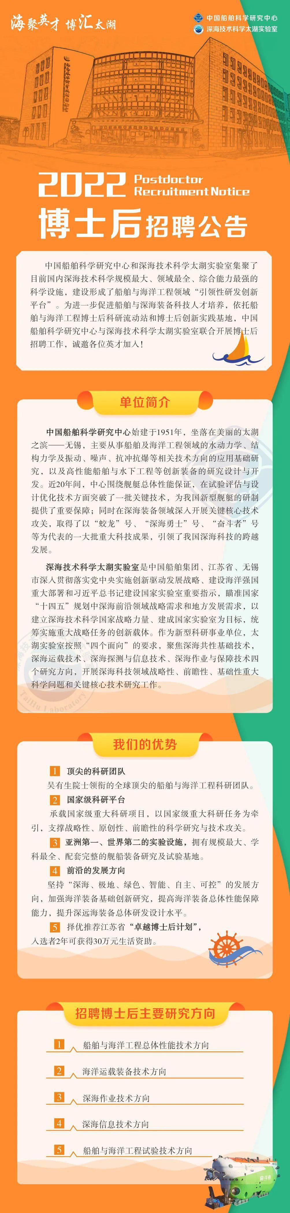 综合年薪35万起!可享20-30万安家费!深海技术科学太湖实验室2022年博士后招聘公告! ...