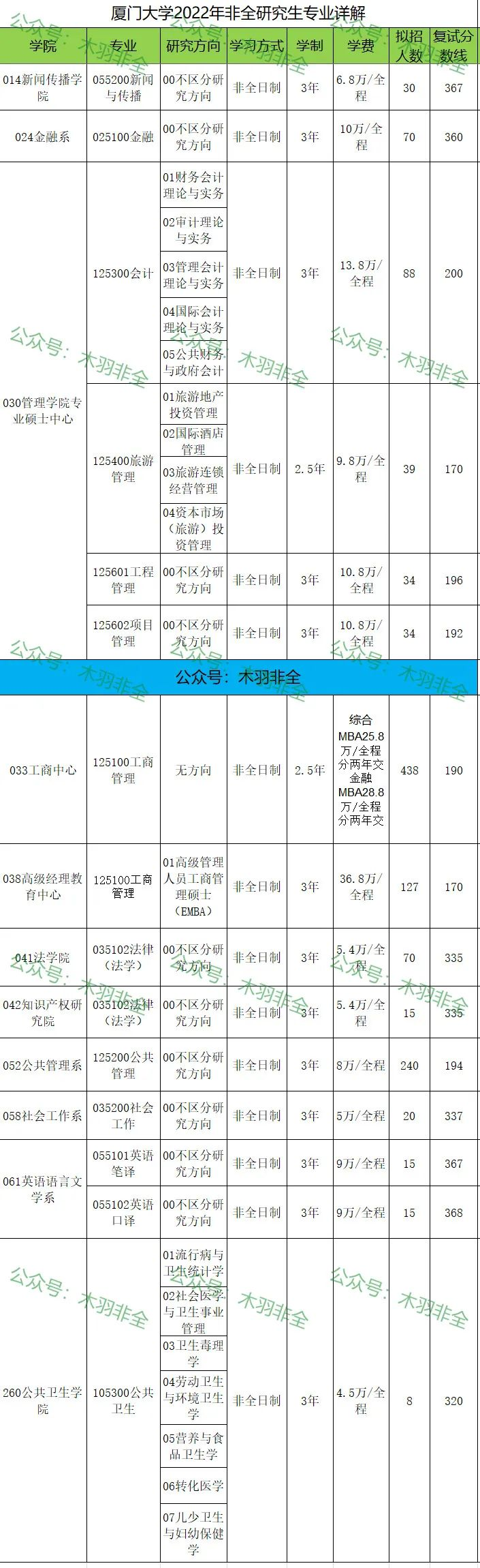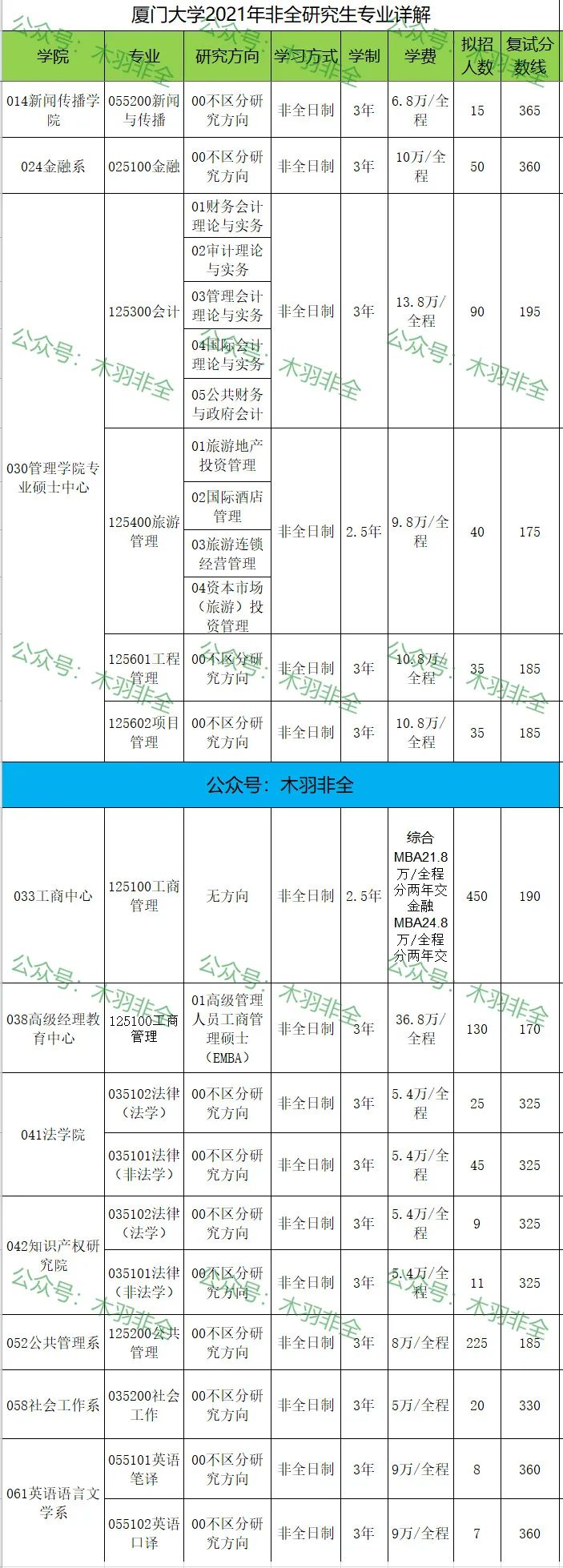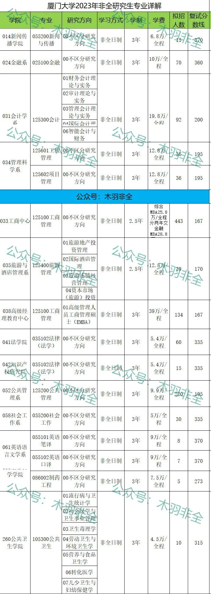学校名气大,非全日制,冷门易上岸 还有一种奋斗叫考研 加油同学们 ![]() 厦门大学,简称厦大,位于--福建省厦门市,也是国家“211工程”和“985工程”重点建设的重点大学。创办于1921年, 是中国近代教育史上第一所华侨创办的大学。建校100年来,学校秉持优良的立校志向,形成“爱国、革命、自强、科学”的优良校风,打造鲜明的办学特色。 ![]() 厦大目前建有思明校区、翔安校区、漳州校区和马来西亚分校,且设有研究生院,形成哲学、经济学、文学、历史学、理学、工学、法学、教育学、管理学、历史学、医学交叉学科等12个学科门类的学科体系。 ![]() 厦大拥有5个一级国家重点学科、9个二级国家重点学科。并且设有37个博士学位授权一级学科,46个硕士学位授权一级学科;29个硕士专业学位授权类别。2022年,生态学、统计学、教育学、化学、海洋科学、生物学 一共6个学科入选了国家公布的世界一流学科建设名单内。 ![]() 厦门大学2023年非全研究生专业详解: ![]() 厦门大学2022年非全研究生专业详解: ![]() 厦门大学2021年非全研究生专业详解: ![]() ![]() |