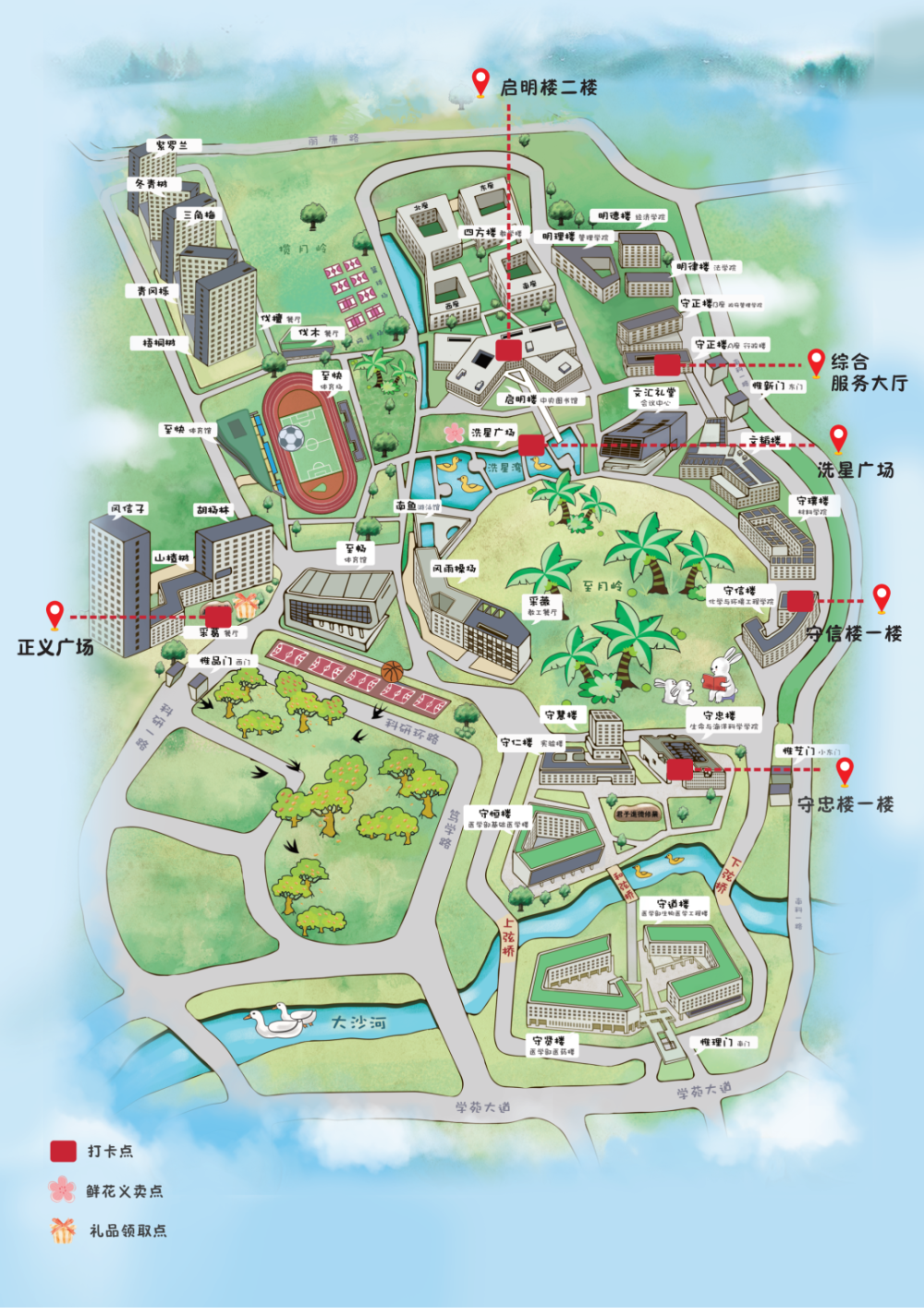 丽湖校区打卡地图 点击查看大图 ?鲜花义卖? “荔”久弥新 花“漾”鹏城 来带走一份鲜花吧 将爱心赠与有困难的儿童和群众 时间:5月12日-5月14日 9:00-18:00 地点:详见下图