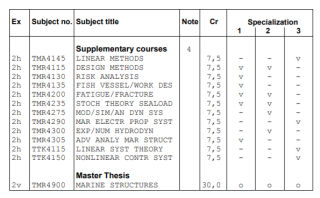 (虽然具体的东西我也不是很清楚,但是毕竟以前研究过这个专业,所以有自己的一些想法)首选中国海洋大学,专业排名全国第一。而且像这种相对比较冷门的专业,最好选择把这种专业作为重点培养的学校。所以,个人建议,如果分数够的话,985里先选中国海洋大学,毕竟有国内最先进的海洋科考船(当然厦大也可以)。其他就是一些地方的海洋大学,这类学校相应的师资力量比其他综合类的会好一些。 具体的数据要去相应的网站上找,排名的话,每一年的跟专业有关的书籍里面都会有,网上的不一定准确。 本文由AdmitWrite留学平台入驻导师 NTNU 高学姐 提供 (注:导师学历已通过平台审核,真实可查) 如果说你对现在所学的海洋技术专业完全不感兴趣的话,那么你可以考虑转专业,学你想学的。 但如果你对海洋技术专业很感兴趣的话,那么听我一句劝,别放弃。 我现在在全球marine technology专排第一的挪威科技大学(NTNU)就读,在我看来,这个专业还是蛮值得一学的,接下来我会给大家讲一讲我就读的NTNU的海洋技术专业,文后也会简略讲讲申请要求。 如果题主,或者其他围观这个问题的同学想申请这个专业留学的话,建议可以找我或者其他平台上该专业的导师帮忙。海洋技术专业并不是热门专业,一般中介几乎可以肯定是没有这方面的专业导师的。 为了满足不断增长的全球人口的需求,海洋是应对众多国际挑战的关键资源:运输,能源和粮食生产。 在海洋研究方面,挪威处于领先地位。海上石油和天然气开采是挪威最大出口产业。海洋和海洋研究也是NTNU的六个优先领域之一。 在Marine technology 下设六个主要的研究方向,包括船舶技术,渔业技术和水产养殖技术以及包括海上可再生能源在内的新开发项目的评估,开发和可持续运营的方法和技术能源(风,波和水流),浮桥等沿海基础设施,以及用于绘制和监测海洋环境的海洋机器人,极地地区海上石油和天然气活动。 这些行业是挪威经济的支柱,也是挪威整个国家大力发展的产业。 NTNU在挪威,最大的特点就是:好山好水好无聊。我认为Marine Technology这个专业最大的好处就在于能够让你有机会真正做到学以致用。 举例说明,本人的专业是偏控制方向,在做课程项目的时候,就真的有机会接触到船模,不是那种摆着好看的,而是真的通过编程设计,能够让他自己跑起来的船模,这在国内根本想都不敢想。 还有,部分课程会提供出海的机会,带着一大帮子学生出海参观挪威的峡湾,放一个ROV探测一下海底的沉船,一整天的行程简直爽到爆。 总的来说,如果你对海洋感兴趣,并且不排斥花很多时间在学习上,那么海洋技术绝对是一个理想的专业。 首先,给大家看一下Marine Technology 下属的一个方向 Marine Structure,这也是最传统的一个方向。 在NTNU有很多课程可以选,也可以选一些跨专业的课程,丰富一下自己的知识背景。 1)Marine Structure ![]() ![]() 2)轮机(Engineering)方向 ![]() ![]() 举例来说,对于结构方向的同学来说,学好本专业基础课程是基础,如结构力学,流体力学等等。我们处在计算机技术高速发展的时代,所以要理所当然的应当尽可能学会运用计算机来解决问题,做到真正的学以致用。 非常建议本科阶段学一下ANSYS和ABAQUS两个有限元计算软件,浅尝辄止即可,有了基础在研究生阶段就比较好入手了。 同时,敲黑板!!!MATLAB和PYTHON在研究生阶段一定会用到,甚至在本科论文阶段就可能接触到了。对于追求卓越的同学来说,提前了解也是极好的(如果你会C++,那我就不说话了,你是大佬)。至于说CAD和INVENTOR等绘图软件我认为是必修的,所以就不加赘述了。 这方面没得说,宣讲会超级多。但是!但是!但是,在挪威,中国人真的较难找工作,因为挪威有自己的语言,挪威语。很多企业在招聘的时候会关注应聘的人是否能够用挪威语进行交流。 其实这点可以理解,就像在国内,如果一个只会说英文的外国人来应聘,大概也很难被录取吧,除非是跨国企业。NTNU会给学生提供免费的挪威语课程,但是相信我,一门语言不可能段时间就学会,时间精力花上去,2年之后,没准你能和挪威人进行简单的对话,但是遇到专业性一点的问题,还是完蛋。 话说回来,假设你学会了挪威语,那么,挪威真的是一个有不少就业机会的地方,对于Marine Technology的学生,像ABB,DNV GL和Kongsberg这样的大企业比比皆是,而且工作环境超级好,几乎是835,能想象吗?一天只需要上6-7个小时班,一周上五天。这简直就是国家在养活所有人。 另一方面,由于挪威的教育特色,在寒暑假,尤其是暑假,各大企业会提供很多summer job给学生,这些暑期实习都是带工资的,同时你还可以丰富你的简历,简直爽到爆。这些暑期实习对将来找工作有很大的好处。 假设:研究生毕业 1. 回国找工作 回国找工作还是很容易的,毕竟NTNU在海洋技术领域的名声享誉世界。很多学生毕业之后都在上海深圳找到了工作。 2. 在北欧找工作 这个一方面看运气,一方面看水平。首先,你要有看上去不错的成绩,最好会一点挪威语,这样才有可能在众多挪威人中杀出重围,找到工作。另一方面,挪威的就业形势受全球经济形势影响十分严重,在2015年之前,就业形势非常好,几乎所有中国留学生在这边都能找到比较满意的工作,但是如果像2016-2018年,很多挪威人都没能找到相关的工作,那就不用提外国人了 3. 升学:继续读博士 在挪威,博士算是工作岗位了,因此,每年的博士职