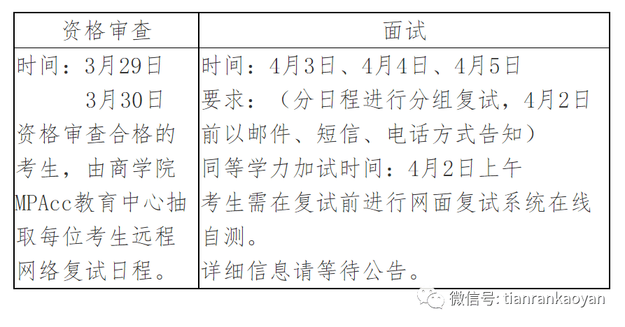接上文 2022年3月下旬-复试 全国各研招单位复试工作陆续进行。复试时间、地点、科目、方式由招生单位自定,复试办法和程序由招生单位公布。 (2021年南京大学MPACC专业复试时间) 复试一般在4月中下旬结束,招生单位认为必要时,可再次复试,外国语听力及口语测试在复试进行,成绩计入复试成绩,对以同等学力资格(以报名时为准)报考的考生,一般要求加试。 少数民族地区仅指国务院有关部门公布的《全国民族区域自治地方简表》中所列的民族自治区域,各招生单位原则上进行120%左右的差额复试。 疫情之下,很多学校可能会延续去年的线上复试方式,所以大家要有针对性的进行准备,比如多准备简答题和名词解释。同时也不能因为线上复试而松懈,要提前演练和了解复试的常规要求,因为无论线上还是线下都只是复试形式。 复试作为考研上岸的最后一步,大家务必要重视,且不说你初试分数考的多高,复试的变数是很大的。每年因为复试掉链子导致最终没有上岸的学生也是年年都有,大家切莫因为侥幸心理而造成遗憾。 2022年3月中下旬-调剂 调剂工作开始。招生单位应及时发布生源余缺信息,符合教育部调剂规定的考生,可在规定时间内通过"中国研究生招生信息网"登录调剂系统,招生单位遴选出参加复试的考生名单,并通知考生复试。 招生单位在规定时间内组织复试,并将复试结果通知考生,接收调剂生的招生单位向第一志愿单位发函调考试档案,做最后审核,确定是否拟录取。密切关注各个研招单位公布出来的调剂信息,第一时间跟需要调剂的研招单位联系。 这个阶段给那些过了国家线但未能进入复试或者在复试被刷下来的考生一线生机。调剂的关键和核心是信息以及信息的及时有效性!有调剂需求的考生在这个阶段要经常上网,密切关注信息。咱们公众号也会及时给大家推送相关讯息,请及时关注。 具体调剂操作步骤如下: 第四步:等待录取通知复试的后续工作,这个时候主要是招生院校对考生进行资格审查,包括档案、组织关系、政审表格等。请大家一定按照复试要求,准备好相关材料。 2022年6月-7月 招生单位根据国家下达的招生计划,考生入学考试的成绩(含初试和复试)并结合其平时学习成绩和思想政治表现、业务素质以及身体健康状况确定录取名单。 这个阶段同学们就美美哒拍个毕业照,给自己的大学生活划上圆满句号,坐等录取通知书的到来,准备迎接自己的研究生生活吧~ 以上就是为大家整理的重要时间节点,以及一些注意事项同学们一定要记得收藏呦~ 希望同学们都能取得理想的成绩,明年九月去往自己心仪的大学开始研究生新生活! |