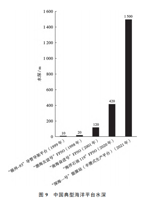 + o" b1 [0 s7 Z! m: ` 随着水下技术日趋成熟,海洋资源开发逐渐向深水发展。中国典型监测系统服役平台所在海域水深逐步增大(下图)。1500m水深的“深海一号”能源站服役,标志着中国海洋平台开发已经从浅海走向深远海。未来海洋资源开发,作业中心逐渐向深水转移。对于海洋平台监测,深水、超深水水下监测传感器、水下信号传输装置、水下信息组网技术、水下声传输、水下无线充电技术以及水下多功能机器人等多领域的国产化硬件研制和集成化水下监测网络建设将成为海洋平台监测深水化的研究重点。 # Y3 q8 n7 F* n