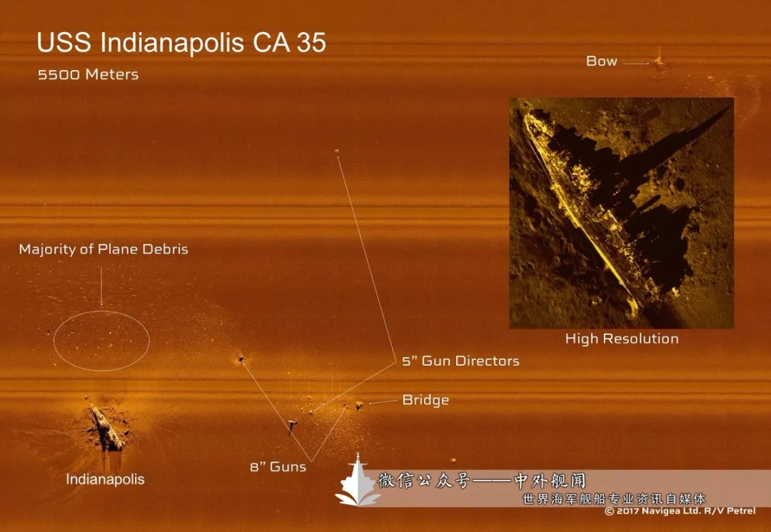 多波束回声测量仪所拍摄到的重巡“印第安娜波利斯”号,一览无余,十分形象