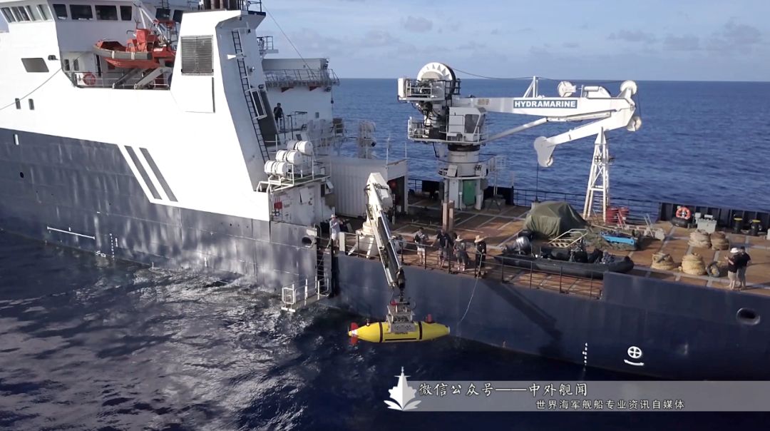 位于“海燕”船尾的Remus 6000自主水下航行器,注意她右侧黑色的声呐阵列