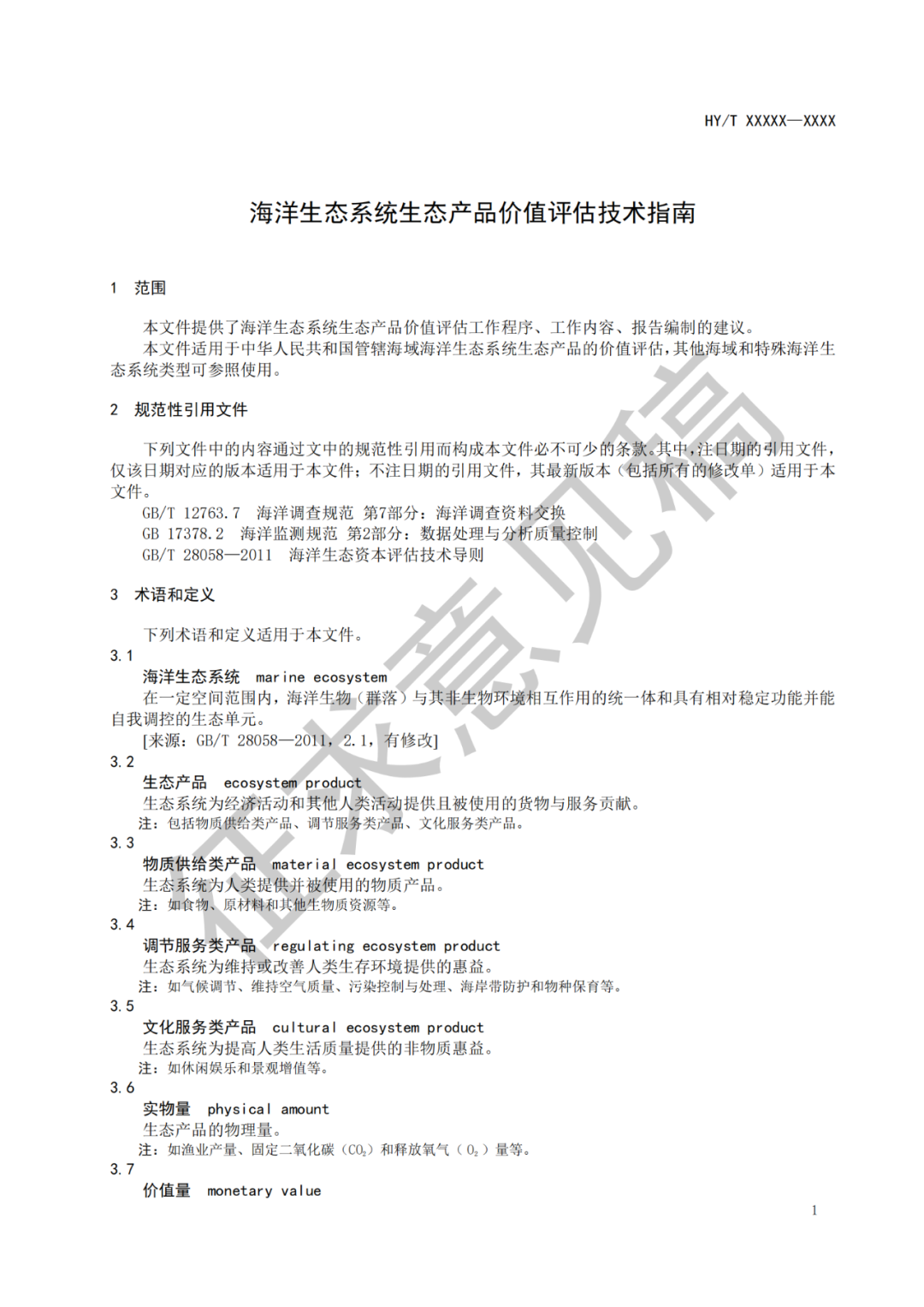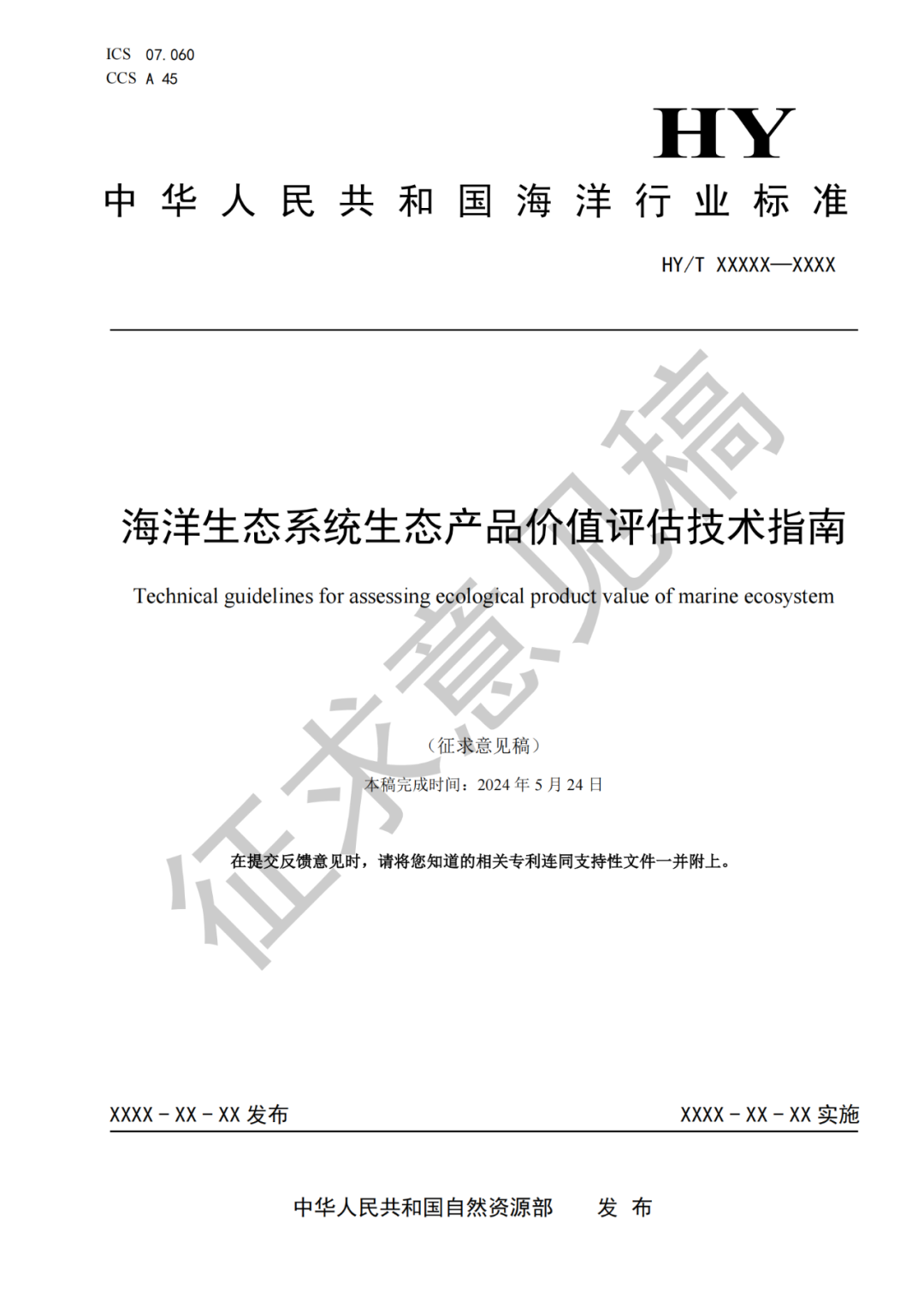 关于海洋行业标准《海洋生态系统生态产品价值评估技术指南》(征求意见稿)公开征求意见的函