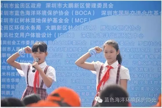 今年共有70多个企业、团体参加了开幕式仪式,深圳市蓝色海洋环境保护协会专家委员会主席、原深圳市海洋局副局长梁俊乾先生、梅沙街道办事处廖远方主任等到场祝贺并做了主旨发言,同时,南油小学的两位可爱的学生代表年轻的下一代,进行了“蓝色宣言”宣誓,向世界传达他们爱护海洋的声音。 ) P R& D: L7 c1 z- L" d- J+ R% q# \ d