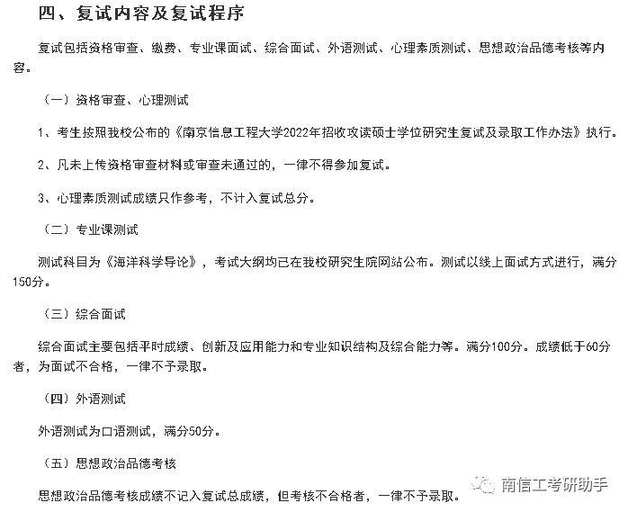 & q8 ]/ a: X1 } 2022年南京信息工程大学海洋科学学院硕士研究生复试内容