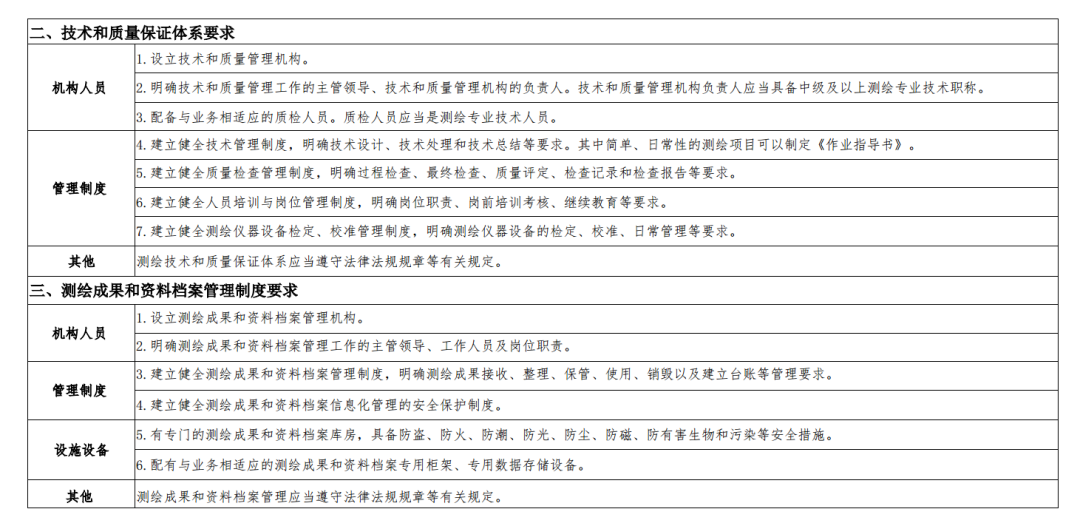 9 V% c& y1 \ ?4 |- q (四)有健全的技术和质量保证体系、安全保障措施、信息安全保密管理制度以及测绘成果和资料档案管理制度。