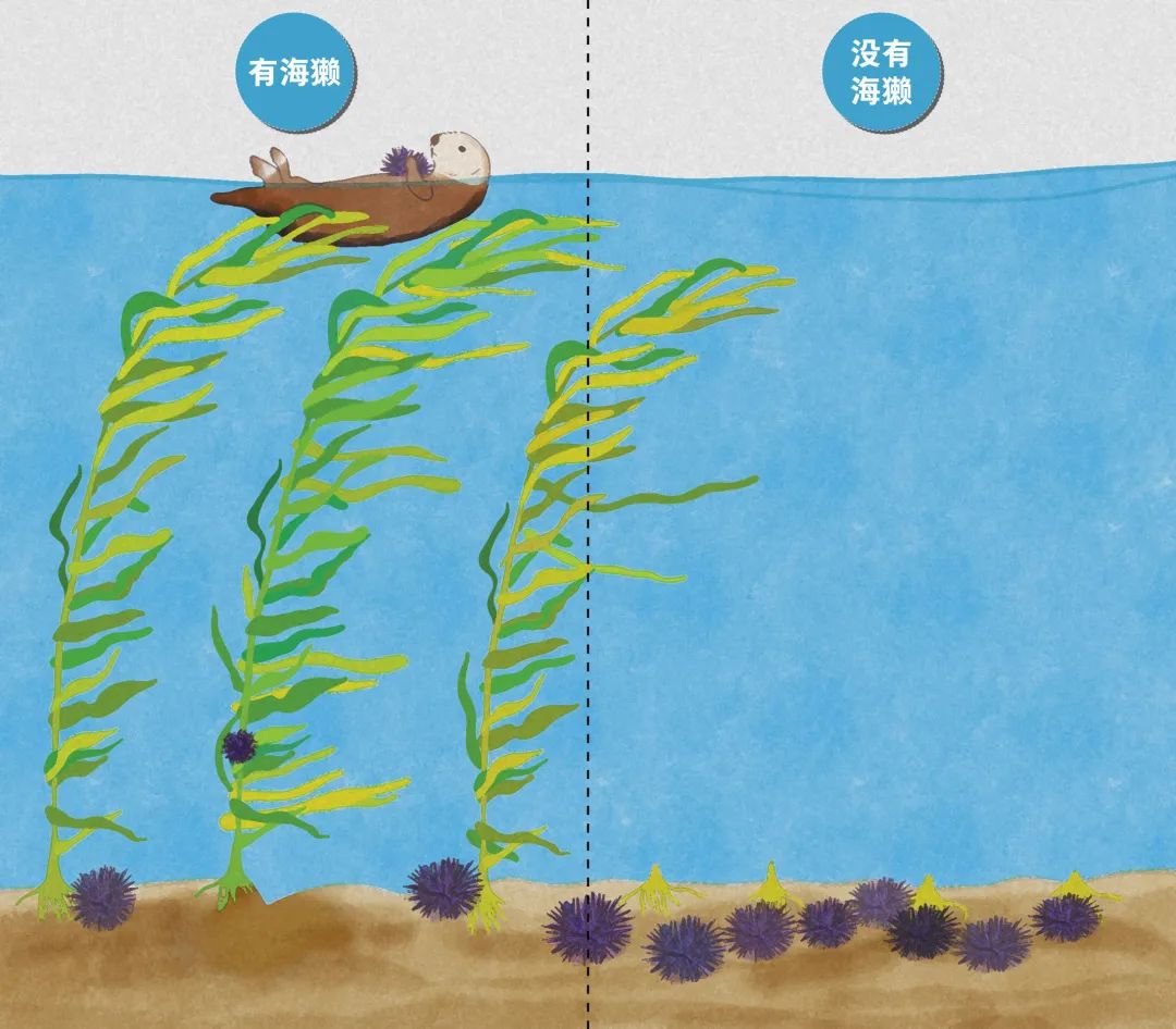 呆萌的海獭也是其中的一员,而且相当重要。以巨藻为食的海胆,是海獭最喜爱的食物之一。正是海獭的捕食,才避免了海胆对巨藻的大肆啃食。 6 _0 V5 K% Y e; D% ^$ [) Z
