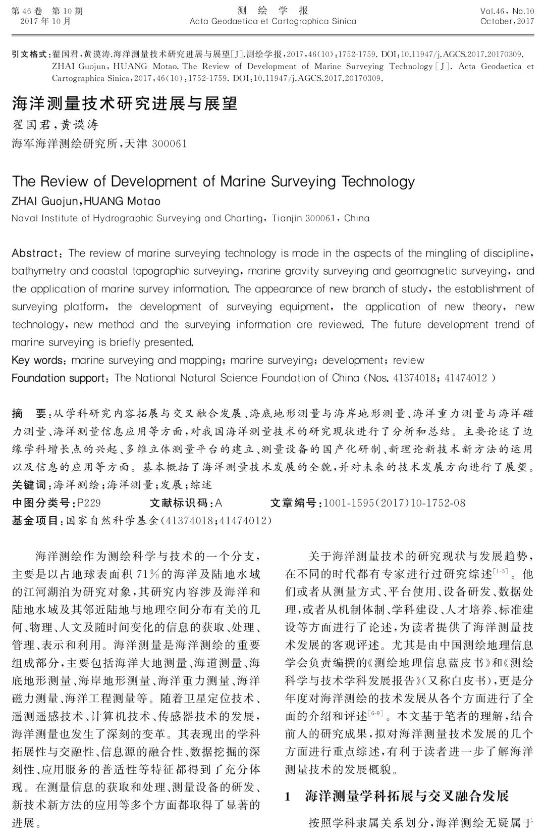 ! m' m1 S# a/ i7 Z3 b: B! n 我国海洋大地测量基准与海洋导航技术研究进展与展望