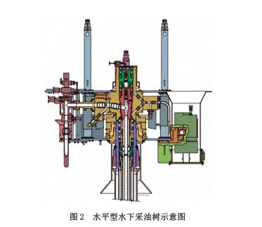 水下采油树是一种用于控制和调节油井生产,并为钢丝,电缆,连续油管等修井作业提供条件的一种装置。水下采油树按照其结构形式可分为两类:垂直型和水平型。在深水海域使用的都是水平型水下采油树,见下图 2。该类型采油树的结构设计对于 ROV 作业来说较为友好,方便 ROV 通过机械手或者扭力工具实现对采油树的阀门的控制。 6 s$ U- D: u; G/ G _! C4 N3 J+ J