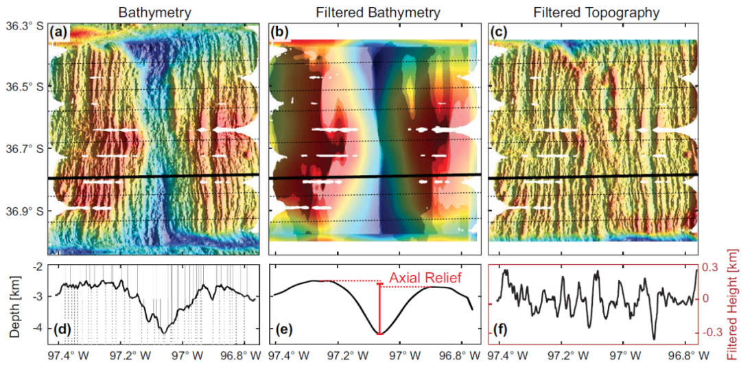 $ P% R7 |9 M1 v! f; E+ f 通过滤波手段解释智利洋中脊的断层分布情况