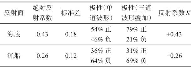 表1 沉船遗址反射系数和极性信息  " T8 C5 ? r: W: z9 ~
