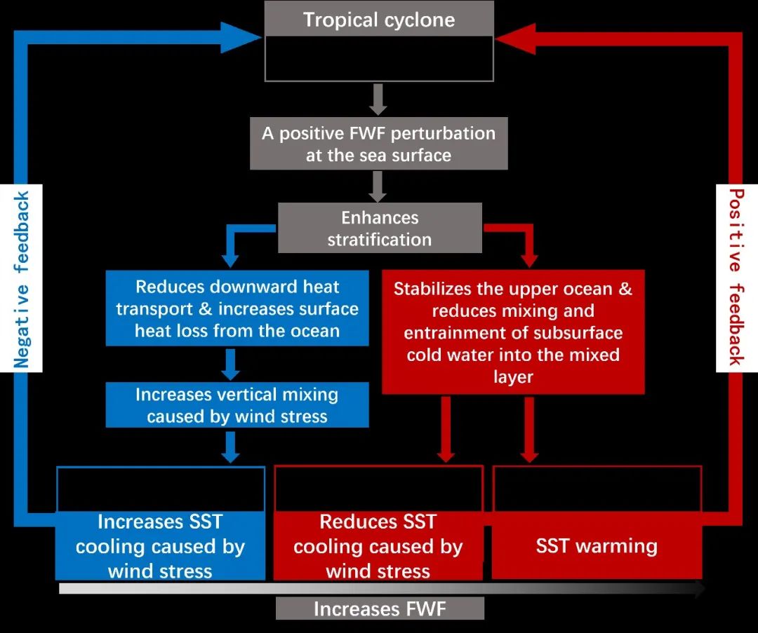 热带气旋引起的淡水通量强迫对上层海洋的影响示意图该研究揭示了热带气旋引起的淡水通量强迫在上层海洋局地响应中的作用,对于提高台风强度预报和路径预报能力具有重要意义。本研究由中科院海洋所博士研究生叶烁旎、南京信息工程大学教授张荣华(通讯作者)和中科院海洋所副研究员王宏娜共同完成,研究得到了国家自然科学基金等项目的联合资助。 文章信息及链接:Shuoni Ye, Rong-Hua Zhang, Hongna Wang, The role played by tropical cyclones-induced freshwater flux forcing in the upper-ocean responses: A case for Typhoon Yutu (2018), Ocean Modelling, Volume 184, 2023, 102211, ISSN 1463-5003, https://doi.org/10.1016/j.ocemod.2023.102211.