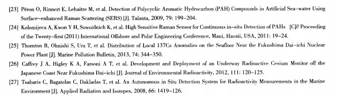 2.4 放射性传感器 国外对海洋放射性原位监测传感技术 的研究起步较早。典型的传感器有基于 NaI(T1)闪烁 晶体的挪威 RADAM HI放射性传感器 、希腊 RADAM原位监测传感器和德 国 ENVINETIGW810核污染监测仪。我国目前尚无相关的成熟技术和仪器产品。清华大学研制了基于 ‘p40mm×40mmNaI(T1)晶体的海洋放射性监测传感器 ,对 Cs一137的能量分辨率为 14.8%。山东省科学院海洋仪器仪表研究所研制了基于 NaI(T1)闪烁晶体的海洋放射性原位监测传感器样机 ,对 Cs一137的能量分辨率小于 7%。同时该所还与国家海洋局东海环境监测中心合作 ,建设 了国内第一个放射性综合监测浮标系统 ,可实时监测海水放射性核素总量 ,甄别 Cs一137、Co一60、I一131、K一40多种核素并计算其活度 。
