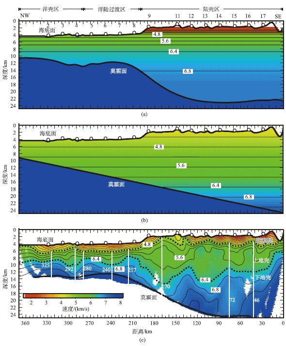 OBS 人工源的做法是:首先,将一定数量的OBS按一定间距沿测线(2-D)和台阵(3-D)进行投放。其次,沿测线以气枪为震源进行炸测。向下传播的地震波通过海底面、沉积层、地壳各分层和莫霍面及地幔内部的反射和折射后,再向上传播被各个OBS 记录;对回收的OBS 原始记录进行各种校正,如OBS位置、炮点坐标、时间漂移、滤波等。最后,根据地震学理论,用射线追踪的正、反演技术,获得海洋下面的深部地壳和地幔速度结构。对单一测线获得2-D 结构,对台阵则获得3-D 结构。天然地震观测不需要专门的地震船和气枪,只是将一定数量的OBS 投放到预定的海底坐标点位,观测一定时间(越长越好),记录海底本身的微震和发生在全球各地的大震。对经过滤波等处理后的记录,根据地震学理论,用各种方法研究OBS下方的地壳、岩石圈或更深的地幔和地核的速度结构。常用的有微震的定位和投影、远震接收函数反演、S 波各向异性反演、噪声反演等。