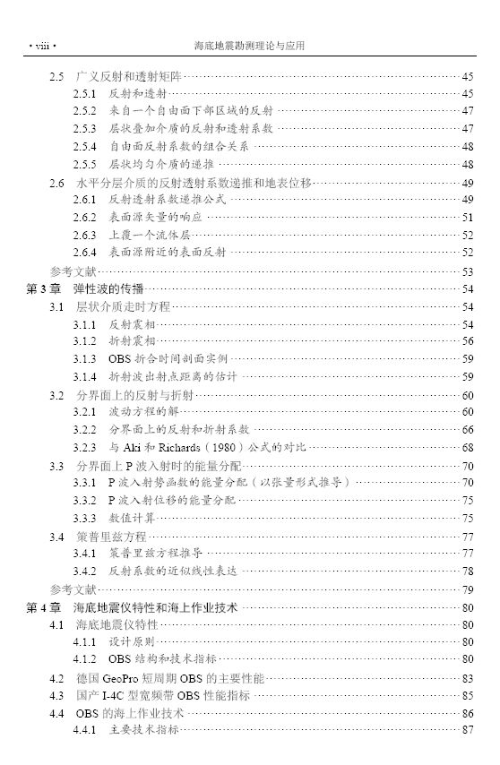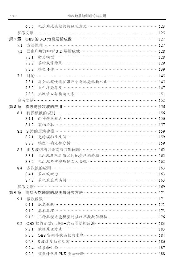 《海底地震勘测理论与应用》对多年实践积累的海底地震(OBS)勘测相关技术进行了总结,对教科书中的一些相关的地震波基础理论作了解释性推导。本书于2018 年出版后,得到了业内人士的好评,特别是受到了青年科技人员和学生的欢迎,并获得了海洋科学优秀图书奖。 - S3 j2 `' W! v8 S3 A