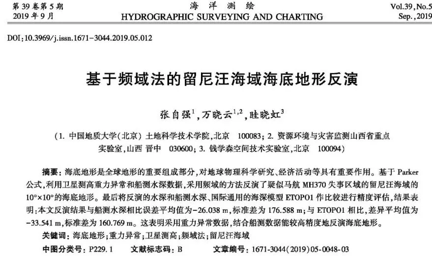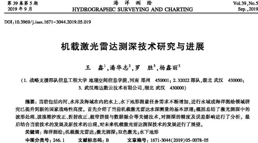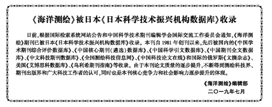 # d1 x0 P! b! z0 `8 y 《海洋测绘》2019年第2期,精彩内容抢先看!