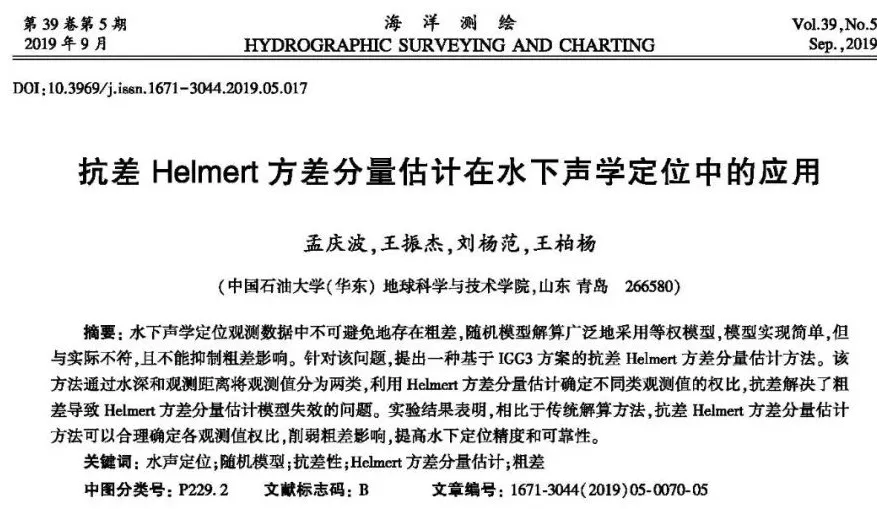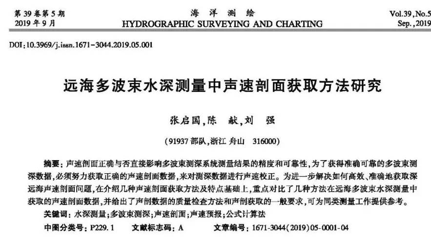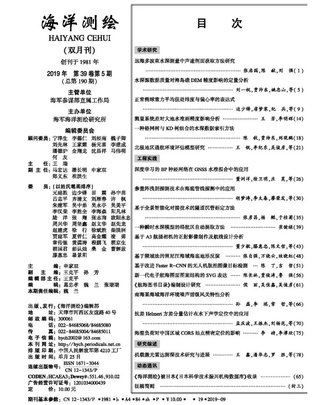 《海洋测绘》2019年第4期,精彩内容抢先看!