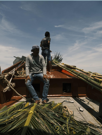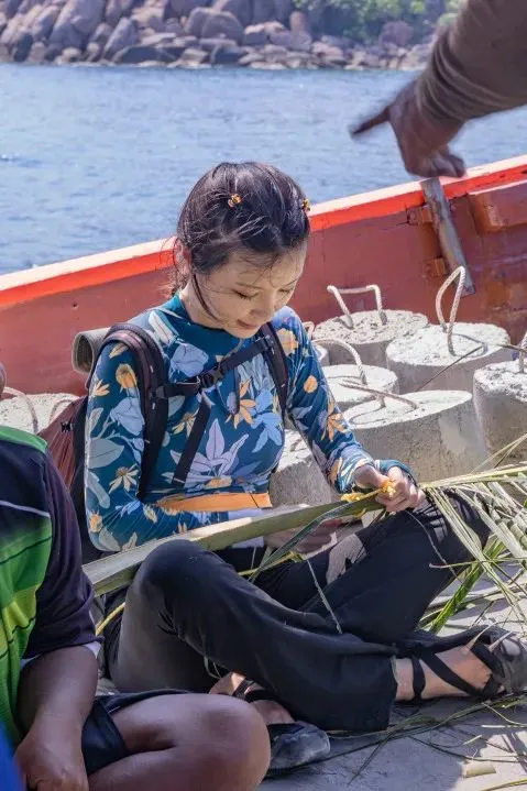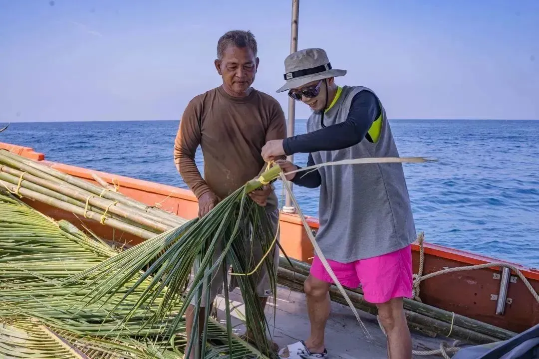 媒体团朋友们还和当地渔民一起出海,学习制作自然集鱼装置,用棕榈叶、竹子、石墩、麻绳在涛岛为海洋鱼类搭建庇护所。
