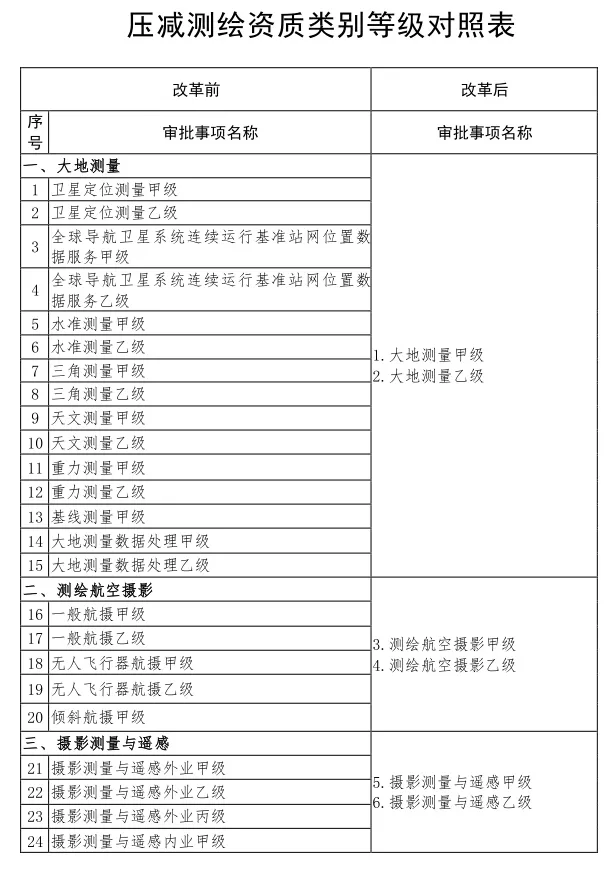 定义转型中国 泰伯网 蓝衫 | 撰文22日,自然资源部网站公布《测绘资质管理制度改革方案(征求意见稿)》,向社会公开征求意见。泰伯网对改革方案梳理后,从中提炼出6项关键改革信息。这些关键信息,基本勾画出了我国测绘资质管理的新制度框架。① 资质两级化改革方案明确,新的测绘资质管理制度仍维持大地测量、测绘航空摄影、摄影测量与遥感、地理信息系统、工程测量、不动产测绘、海洋测绘、地图编制、导航电子地图制作、互联网地图服务10个测绘资质类别不变。但原有测绘资质的甲、乙、丙、丁4个等级,将缩减为甲、乙两个等级,新乙级标准基本维持在现行政策各专类别最低等级。② 精简类别原有测绘资质共10个专业类别,之下又划分138项小类。改革后,10个大类不变,但138项小类将压缩为20项测绘资质类别、等级,压减幅度达到85.5%。也就是说10个测绘资质下设的小类别,改革后将只有甲、乙两级类别,合计20项小类。③ 审批权下放改革后,多数专业类别的甲级测绘资质将下放至省级自然资源主管部门审批。这样一来,原来甲级测绘资质省级自然资源主管部门初审的环节也同时取消。此来,不仅方便了企业就近办理甲级测绘资质申请,也便于地方自然资源主管部门属地化管理和服务。④ 降低准入门槛新制度将大大减少测绘资质的申请条件,包括:降低对申请单位的非测绘专业技术人员要求,允许申请单位通过租赁等方式解决非常用贵重装备,不再以“学历+工作年限”认定专业技术人员等。另外,新制度将继续实行全程网上申报和审批,同时进一步压缩审批时限,压减非必要的证明材料,并将逐步推行电子证书。⑤ 开放高精地图资质测绘资质10个专业类别,其中9个的下设小类被大大压减,唯有导航电子地图制作扩充了。目前导航电子地图制作只有甲级资质,改革后,它将增加乙级资质。昨天,国务院办公厅发布了《关于进一步优化营商环境更好服务市场主体的实施意见》。意见非常明确的提出来,要降低导航电子地图制作测绘资质申请条件,压减资质延续和信息变更的办理时间。很明显,国家对高精地图高度重视:正努力降低资质获取难度,加大该领域的开放程度——它与自动驾驶的国家战略密切相关。⑥ 实施时间改革方案要求,包括新测绘资质管理办法和测绘资质分类分级标准在内,新政策要在 2020年底前发布实施。针对即将改革的新测绘资质管理制度,尤其是甲乙两级制度,之前很多受访的业内人士都表达了不同的看法和意见。但同时,有不少来自物流、通信乃至AI领域的企业,颇为期待这次改革,并打算新政实施后启动资质申请工作。其中,有企业就把目标对准了对新增的导航电子地图制作乙级资质。本轮测绘资质改革,实则是满足测绘地信产业进一步市场化、产业化的需求。随着改革的深入,产业竞争水平或将大大提升,同时对产业内的企业也提出了更要的要求。    加群提示