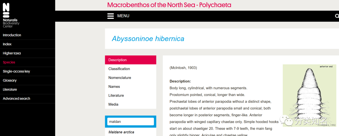 / e _# o+ @# R' k 海洋生物鉴定门户网站提供了许多不同的海洋生物的鉴定信息,为日常的物种鉴定、海洋生物知识普及、海洋生物系统学研究等提供了帮助。其简洁的网站页面设计提供的都是满满的干货,几乎可以让任何一个有浅显网络检索知识的人都可以通过它找到想了解的相关类群。