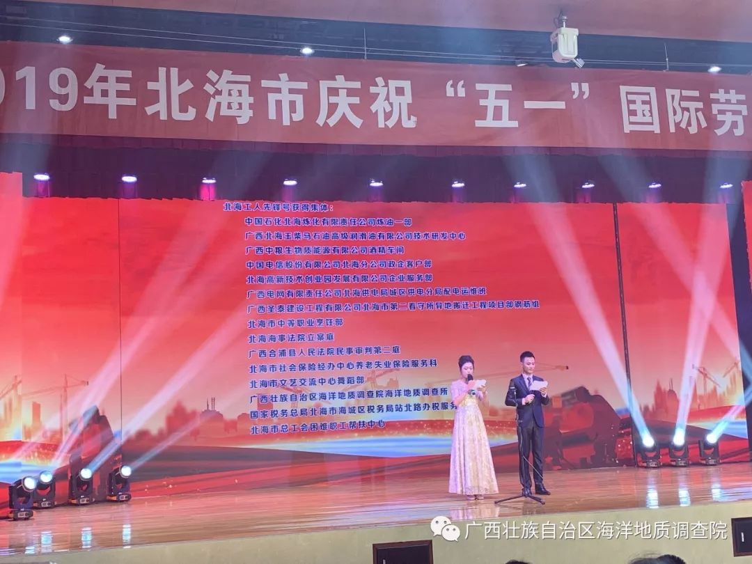 海调地质调查所以显著的成绩荣获2019年北海市“工人先锋号”荣誉称号 & l. x# ~- P3 q