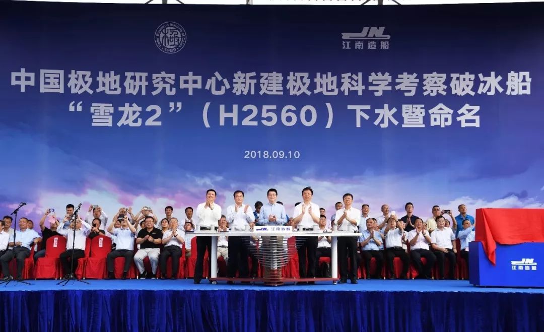 / _$ K5 [- D+ j9 {. {7 ]7 {" P (2018年9月10日,“雪龙2”号下水暨命名) ' y% {9 {; W5 g3 ?