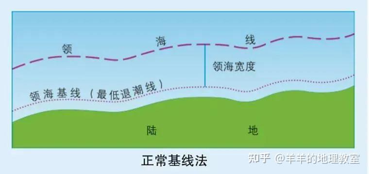 海洋领土的界定首先需要一个起点,它就是领海基线,通常是沿海国的大潮低潮线。 6 N& z* D% _1 j: a! `% n