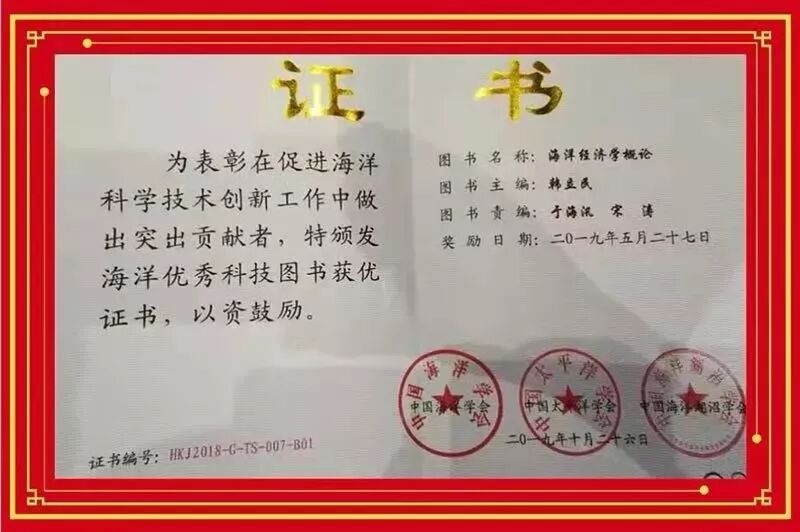 中国海洋大学共主持获得5项二等奖和5项海洋优秀科技图书,获奖数量创历史新高,位居全国获奖单位首位,获奖率50%,远高于该奖励的平均授奖率(38%)。其中,海洋发展研究院副院长、管理学院韩立民教授主编的《海洋经济学概论》获评海洋优秀科技图书。这是学校人文社科领域首次获此殊荣。