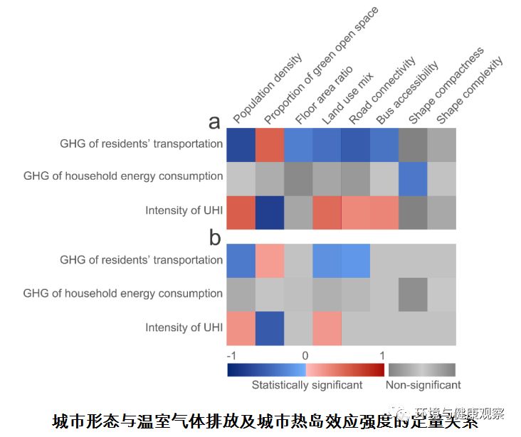 (1)相较于家庭社会经济属性和居民低碳意识,城市形态是影响居民交通出行温室气体排放最主要的因素;城市密度、土地利用混合度、交通连接度和公共交通可达性是影响居民交通出行温室气体排放的关键空间形态指标;集聚式的城市空间形态更有利于减缓温室气体排放。