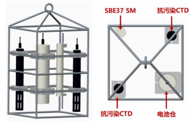 图5 近海岸CTD海试比测架安装示意图 , P# I$ H" l5 n4 w& P1 I, G