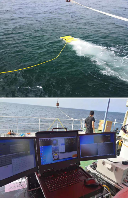 ' J6 u% x$ J' U1 Z8 v, U 基于锚泊式海上试验平台进行有缆水下机器人(ROV)的测试,可对ROV系统性能、工作稳定性以及可靠性进行实时监测,并为后续深远海域测试做好准备。 7 K9 B4 R, m6 }) B" j' p