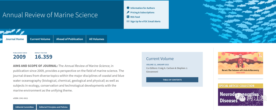 今天,我们再来看看海洋与淡水生物学分类下面SCI期刊影响因子吧(表1)!其中Annual Review of Marine Science的影响因子有所下跌,但仍然在10分以上,排在第二位的是Oceanography and Marine Biology,影响因子达到8分。达到5分以上的还有MARINE POLLUTION BULLETIN和Advances in Marine Biology。以上主要是针对海洋生物学方面的期刊,而主要针对淡水生物学的期刊普遍影响因子较低。 5 e8 H: j: }# f6 ~) R; r7 a8 r' z