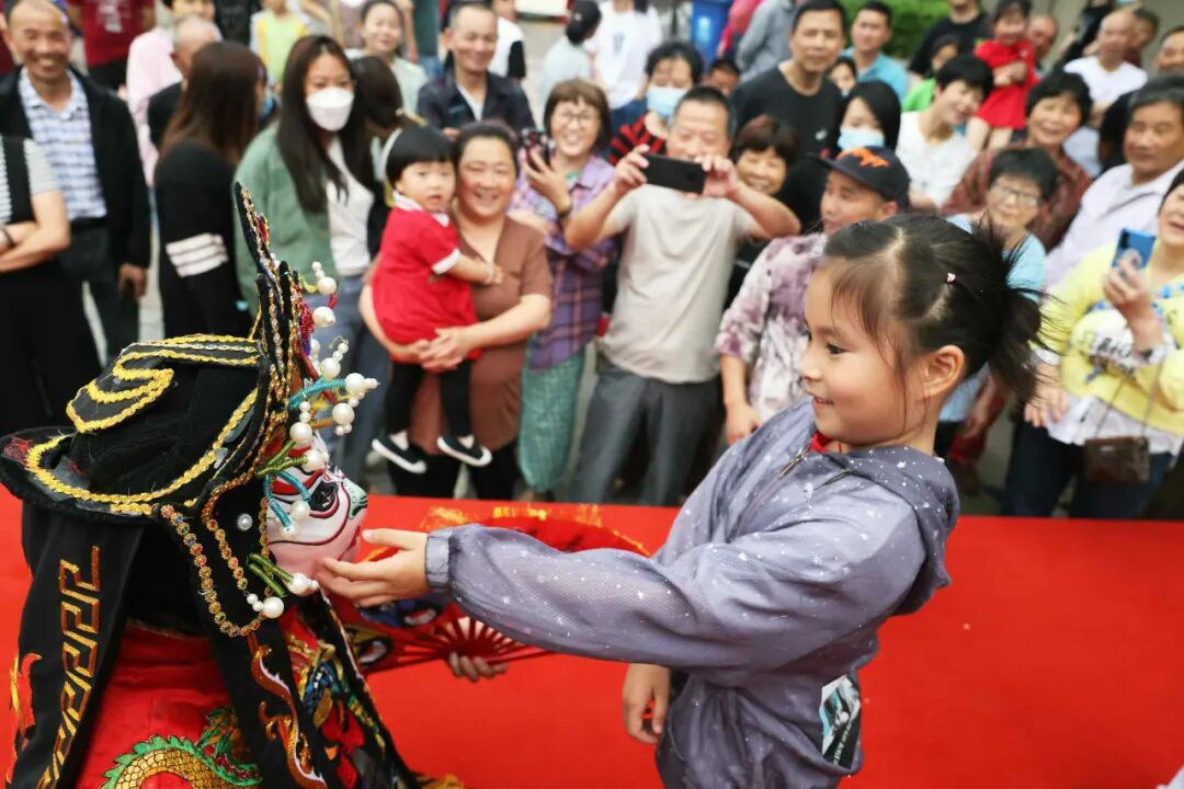 / Y/ P; S3 y J. J# d3 S 6月10日,在浙江省湖州市德清县乾元镇,小朋友感受变脸技艺。倪立芳 摄 * g2 Q$ s+ q4 G# H