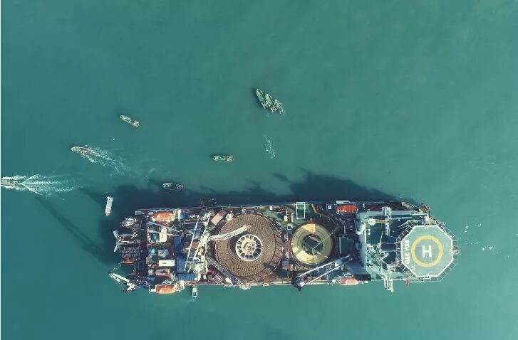 原文标题:航拍视角下的海底电缆铺设船,这不是科幻片! $ Z1 N0 Z; U3 T/ d: f1 _