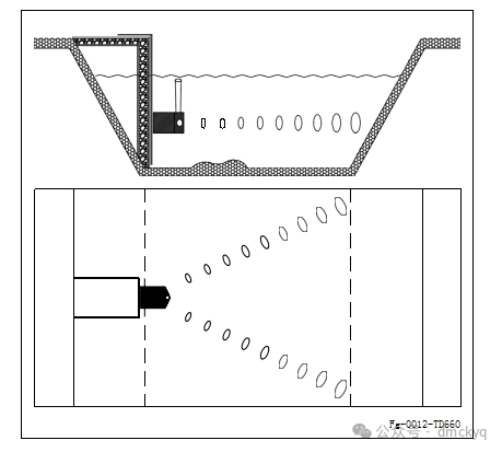 2 f. _$ O. Q/ A+ B ■剖面仪水平安装时:距水底距离:>=300mm,距水面距离:300mm(根据不同的河宽会有变化) ) u! T! Y2 o2 |. m