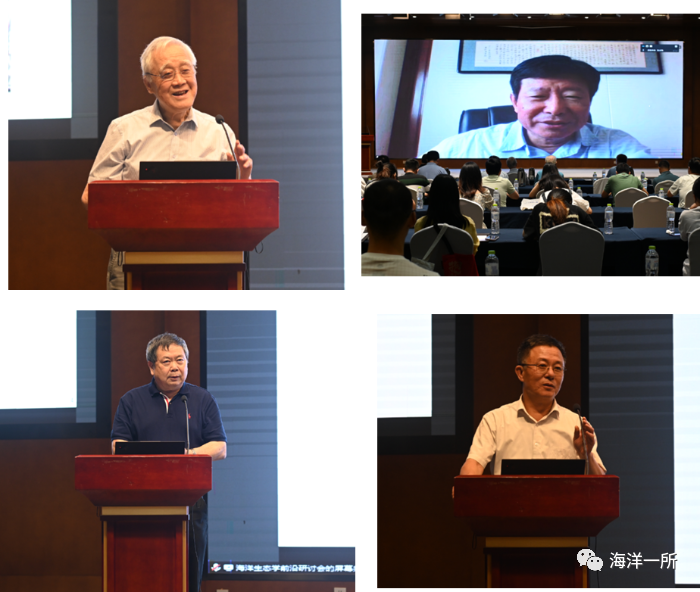 4 b6 E) b/ D% j& y" t 研讨会主旨报告环节由李铁刚所长主持。自然资源部第二海洋研究所苏纪兰院士、中国大洋矿产资源研究开发协会张占海理事长、中国科学院海洋研究所孙松研究员、中国水产科学研究院黄海水产研究所金显仕研究员作为研讨会特邀专家,分别作了主题为“我国近海生态环境的一些关键基础科学问题”、“国家管辖外海域生物多样性养护国际进程与中国参与”、“面对变化中的海洋生态系统—感知、认知与应对”和“环境变化对渤海鱼类早期资源变动的影响”的主旨学术报告。 0 y9 d# i2 e1 i
