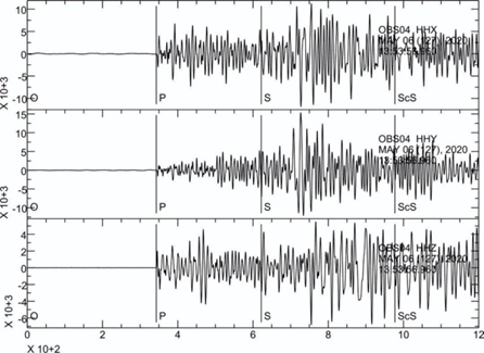 3 H k @# P3 K 海洋地震监测仪记录的地震波形 3 U: v7 a% j/ M' C