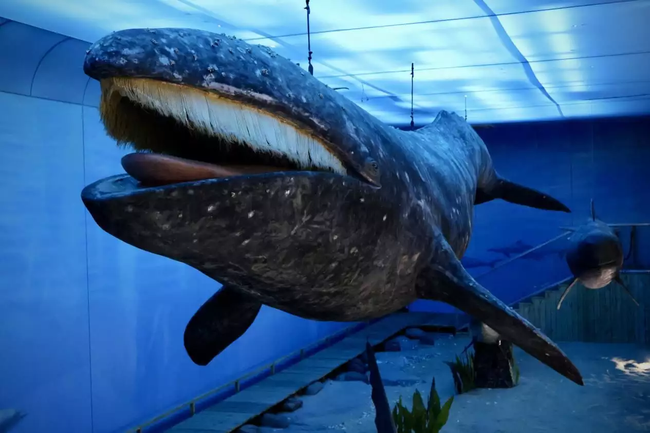 海洋三所的鲸豚展馆内,我国保存最为完整的灰鲸标本。林小艺摄