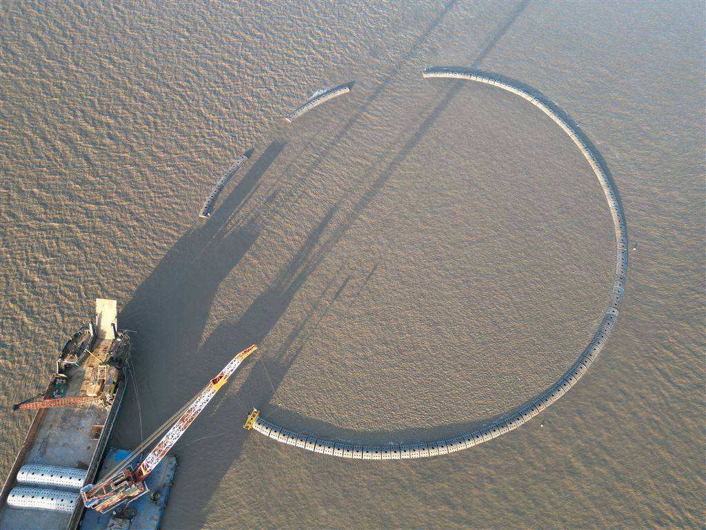 面对复杂工况,项目团队提前研究临港海域历年水文情况,编制赶潮施工方案,借助BIM技术搭建现场模型,规划水上施工区域布局,模拟各类施工船舶的走位布置与行进路线,确保水上施工安全高效。 # q6 Z/ U* Z8 N; [