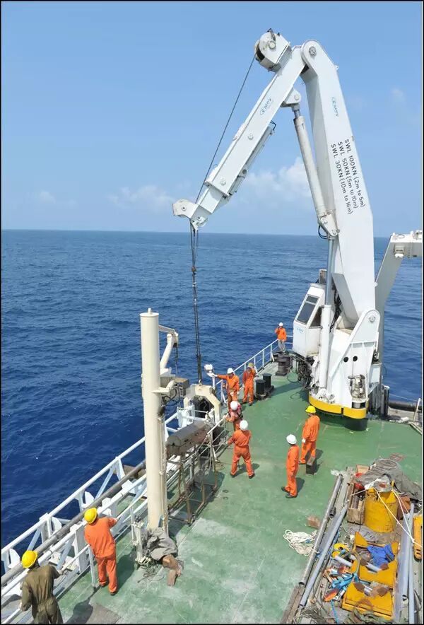 在船上进行柱状取样调查