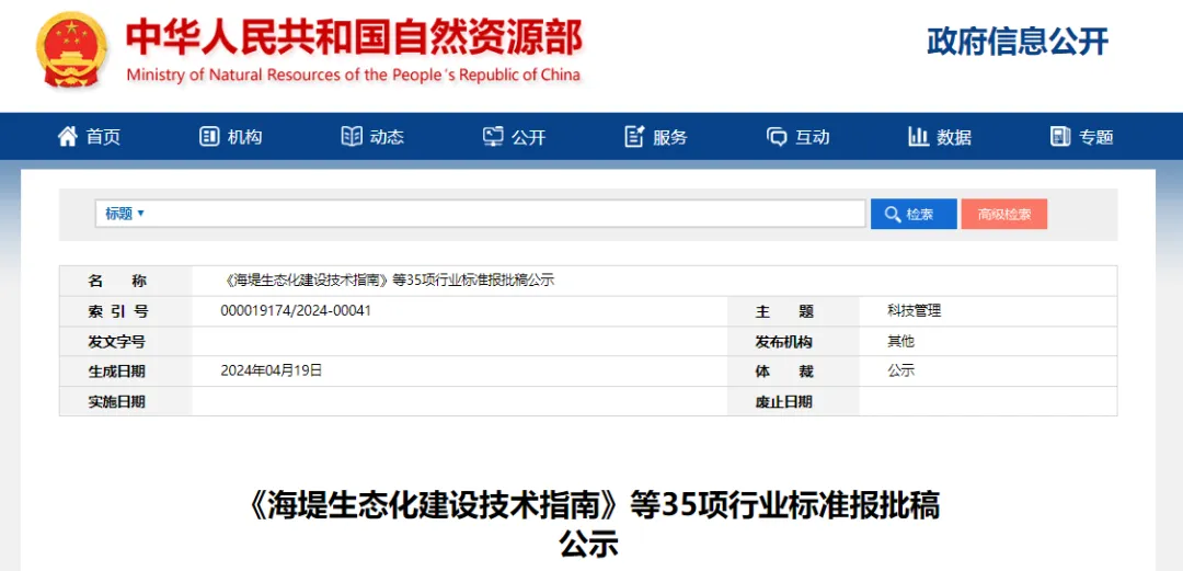 近日,自然资源部发布了《海堤生态化建设技术指南》等35项行业标准报批稿的公示。其中《海域使用统计技术规程》规定了海域使用统计原则、统计工作流程、统计调查内容、统计分析和统计产品等要求。该文件适用于海域使用统计调查和分析研究等工作。