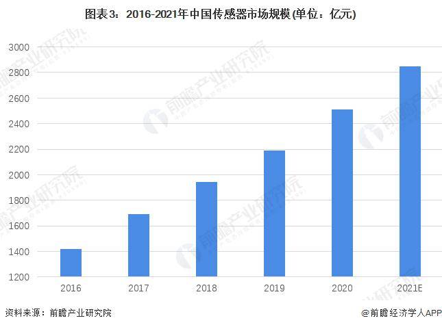 近年来,中国汽车工业、通信行业等行业快速增长,带动传感器行业市场规模增长。2020年中国传感器市场规模超过2500亿元,达到2510亿元,较2019年增长14.66%。初步统计数据显示,2021年中国传感器市场规模约2850亿元。 , r9 i8 N+ J5 z: `/ U$ O