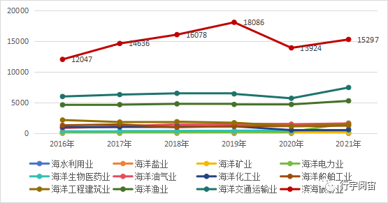 2016-2021年 中国海洋产业增加值增长情况图(单位:万元) / r$ G5 O) I2 e9 x7 K" M# `* y