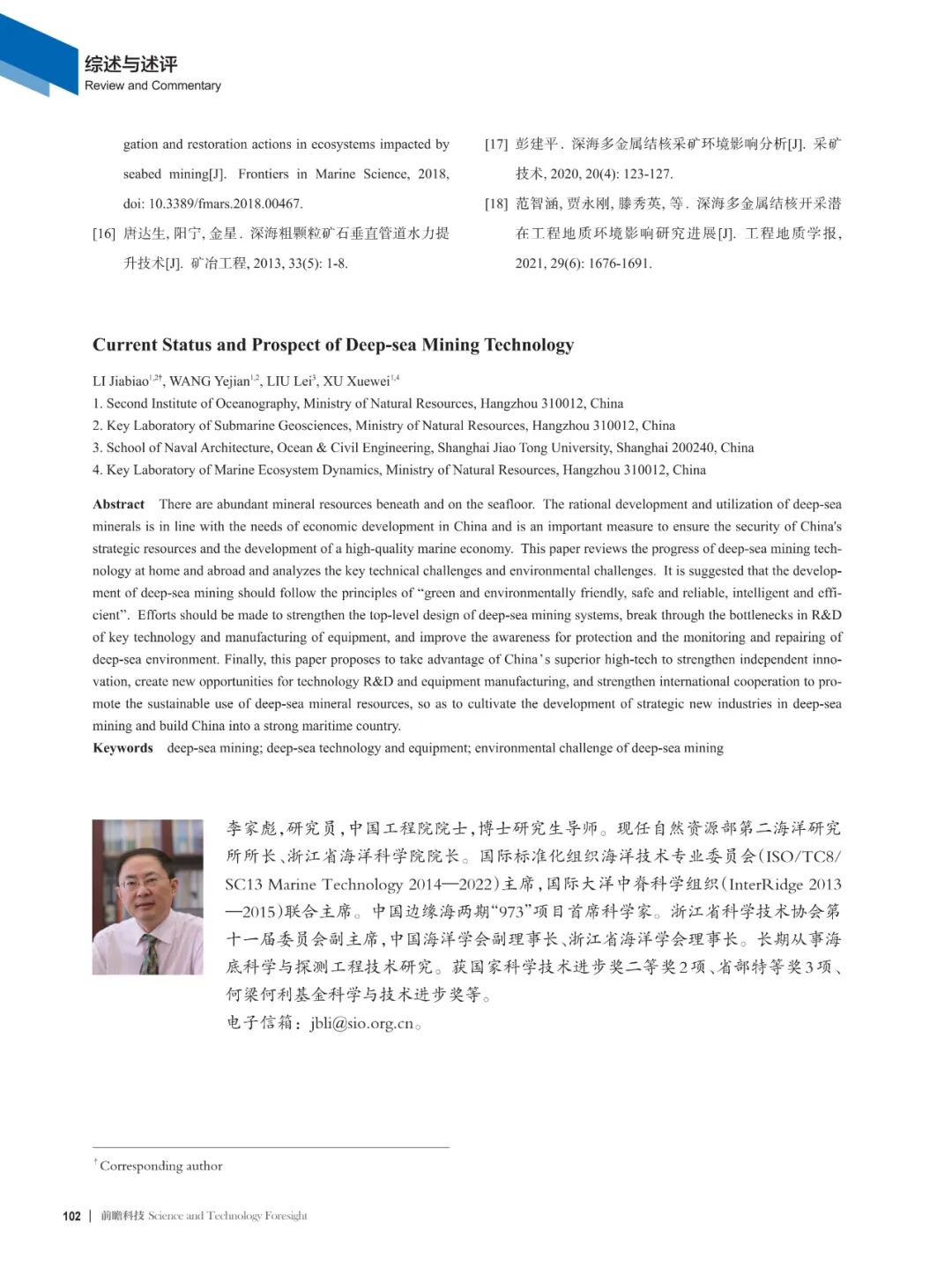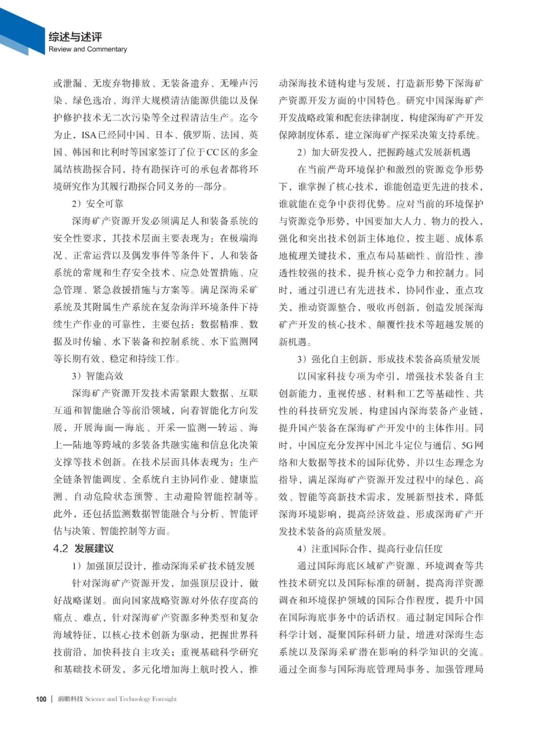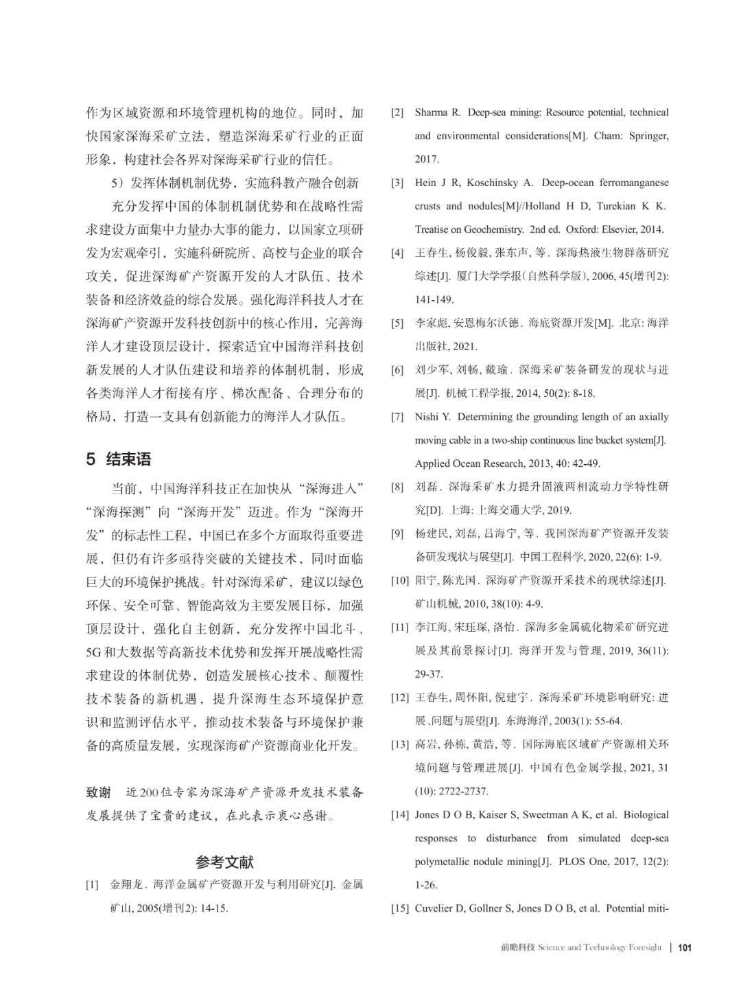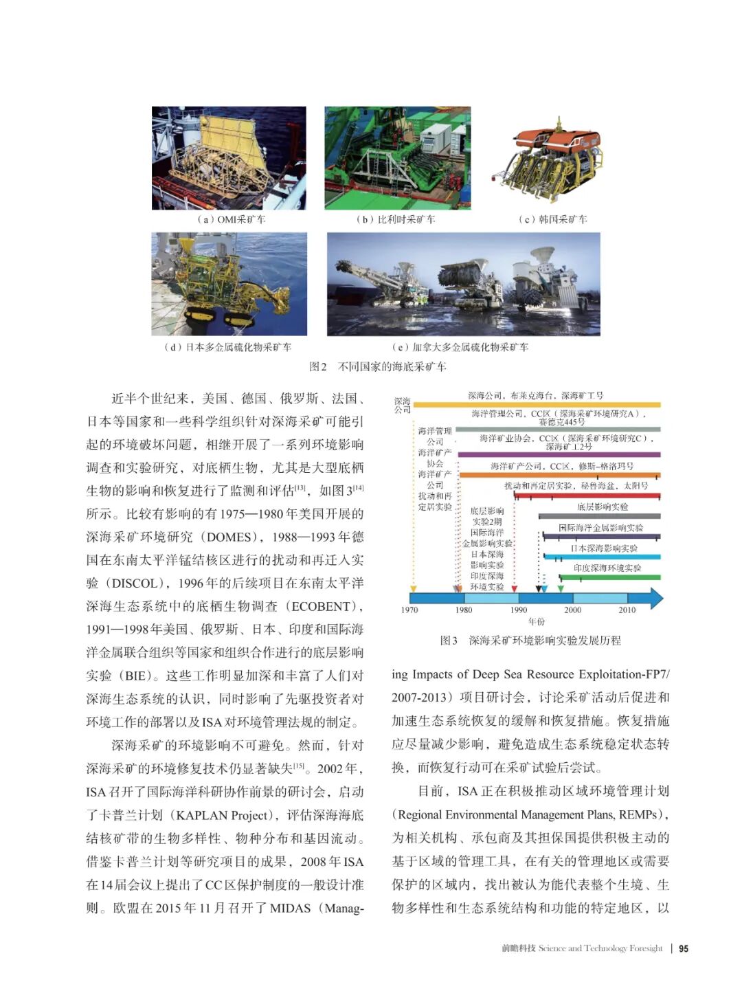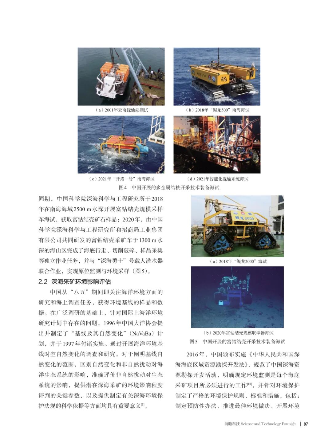 * |7 ~) {5 c, Y* @3 c* I 深海海底蕴藏着地球上远未认知和开发的矿产资源。目前全球尚无适合商业化开发的深海采矿系统,多数装备仍处于研制和试验阶段。本文回顾了国内外深海矿产资源开发技术进展,分析了关键技术和环境影响挑战,提出深海矿产资源开发应遵循“绿色环保、安全可靠、智能高效”的发展原则,加强深海采矿系统顶层设计,突破核心技术装备研发和制造瓶颈,提升深海环境保护意识和监测、修复技术水平。